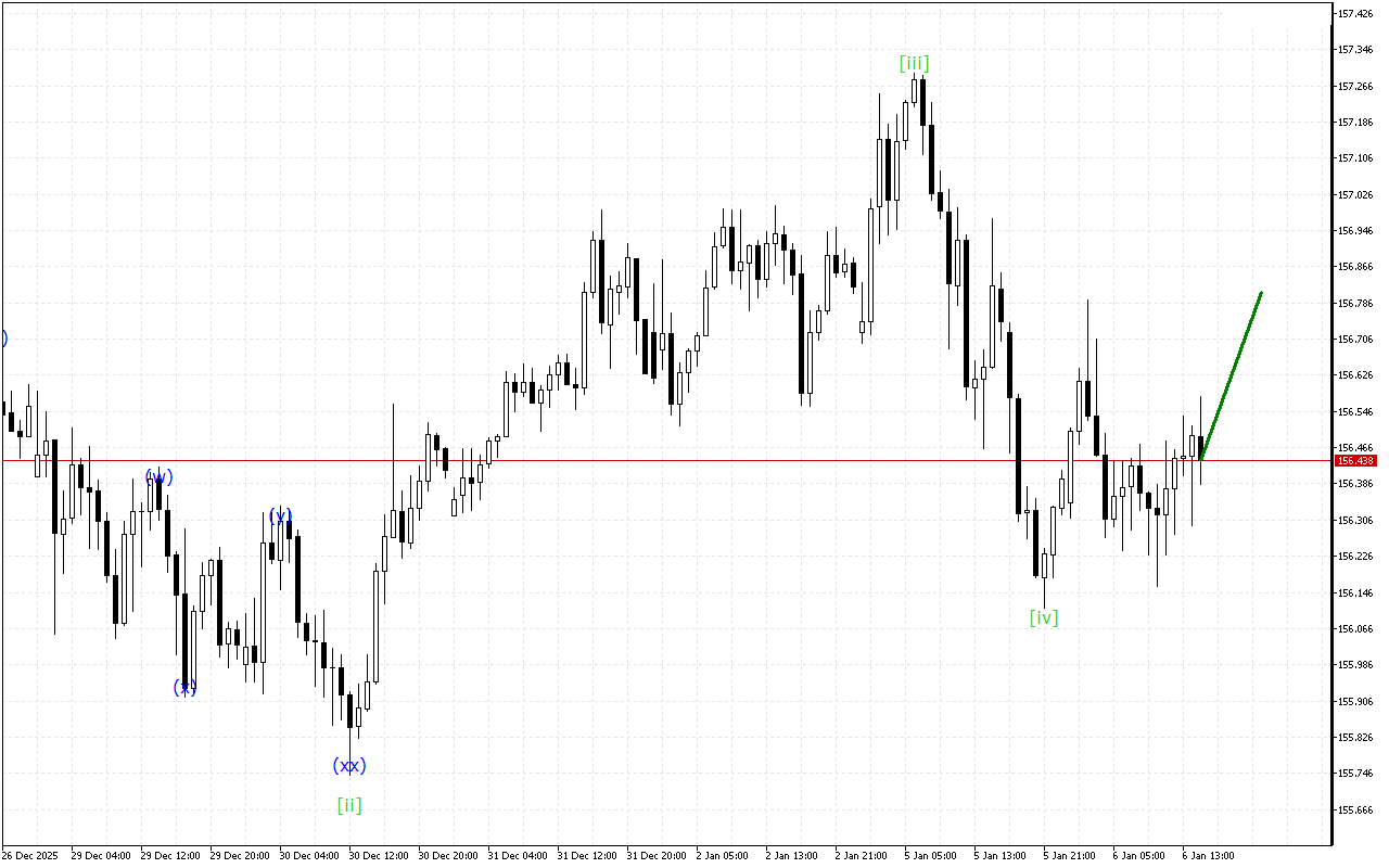 At a higher time interval, an ascending wedge continues to form. A downward corrective wave [iv] has been formed in this movement by this moment. Once this wave is completed, the formation of an upward wave [v] should be seen.