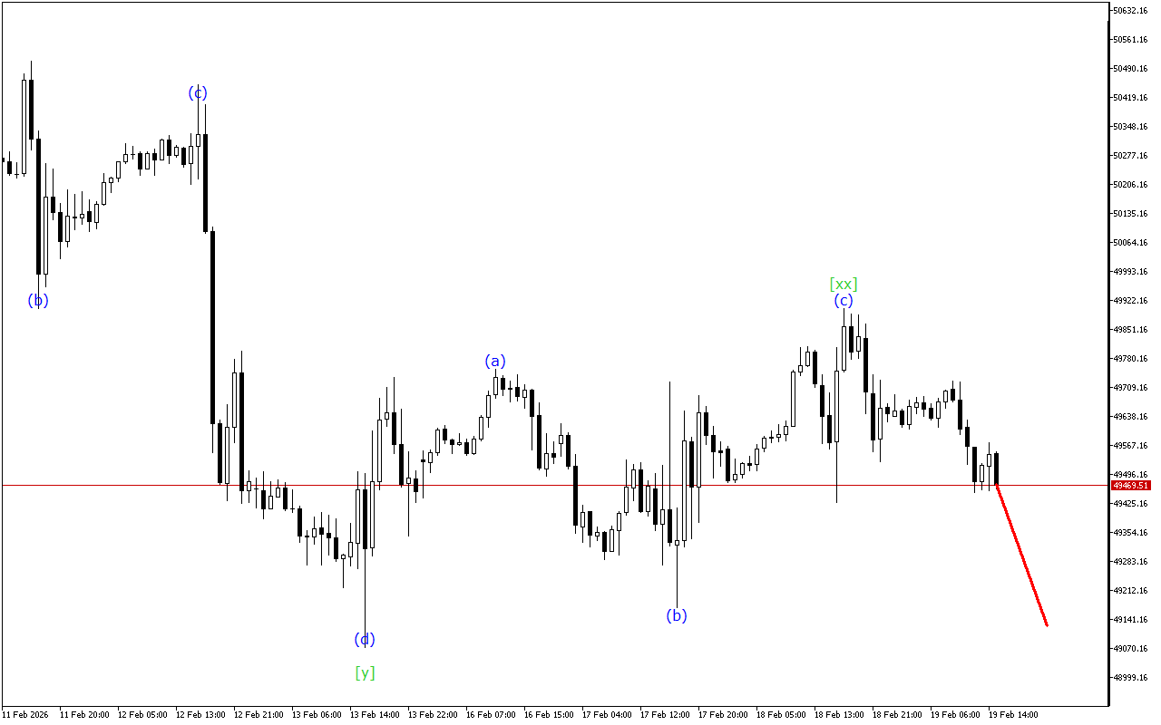 There is the development of a triple three wave structure on a higher time-frame. Currently, the wave [xx] has been formed. After this the price should resume its downward movement.