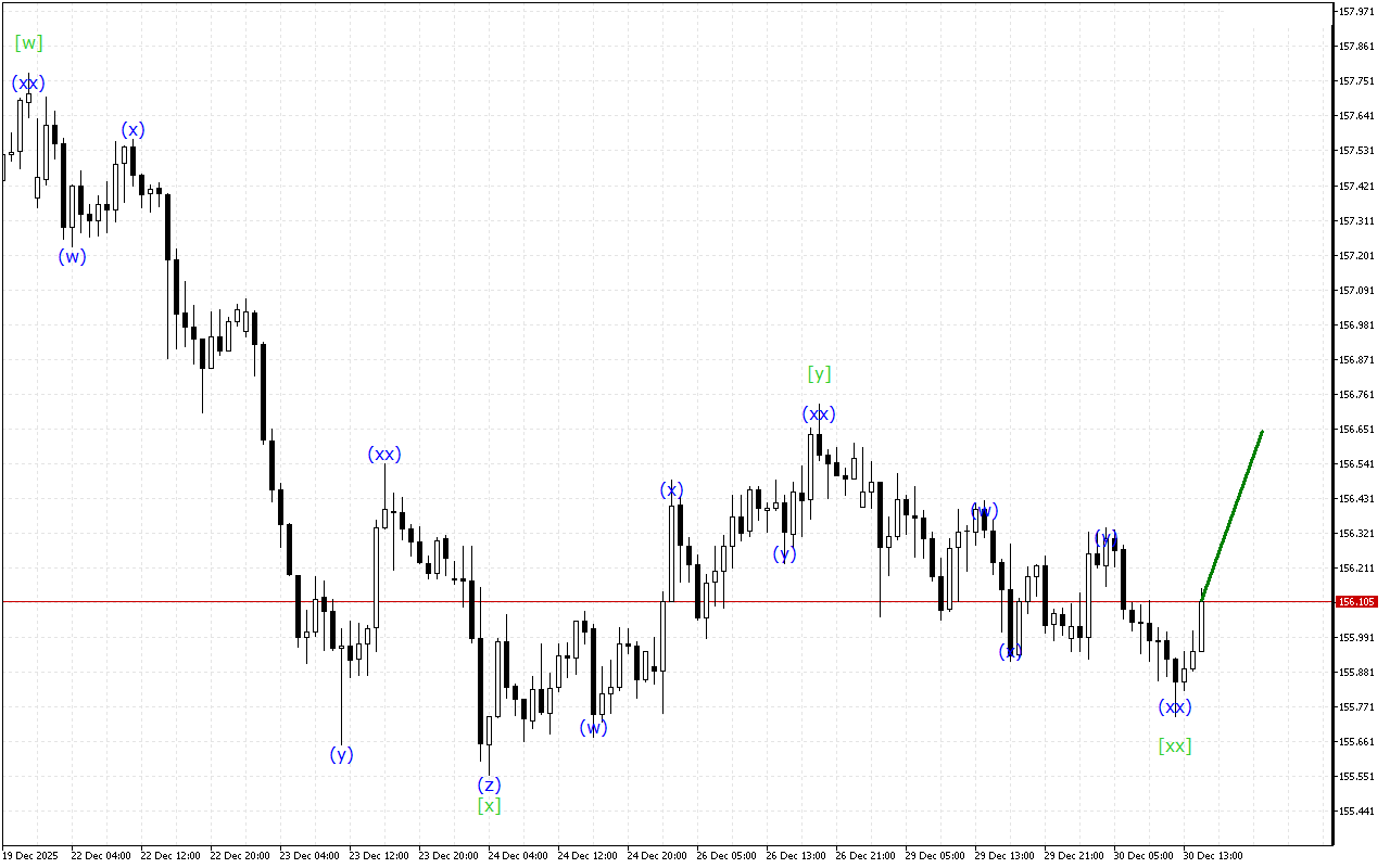 USDJPY terus bergerak dalam struktur gelombang Triple Three. Sekarang tampaknya pembentukan gelombang [xx] telah selesai pada grafik dan perkembangan pergerakan ke atas dapat diperkirakan dengan gelombang [z].