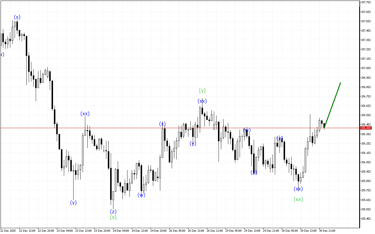 Vektor pergerakan jangka menengah USDJPY menunjukkan pembentukan struktur gelombang Triple Three. Saat ini pembentukan gelombang [xx] telah selesai dan diharapkan akan dimulainya pergerakan ke atas dalam gelombang [z].