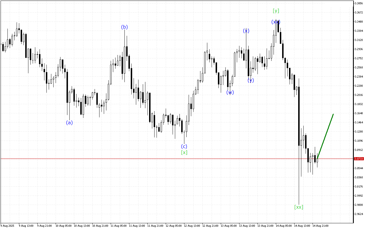 Dinamika pergerakan saat ini menunjukkan terbentuknya triple three. Saat ini, gelombang [xx] telah terbentuk. Setelah terbentuk, diperkirakan akan terjadi perkembangan gelombang ke bawah [z].