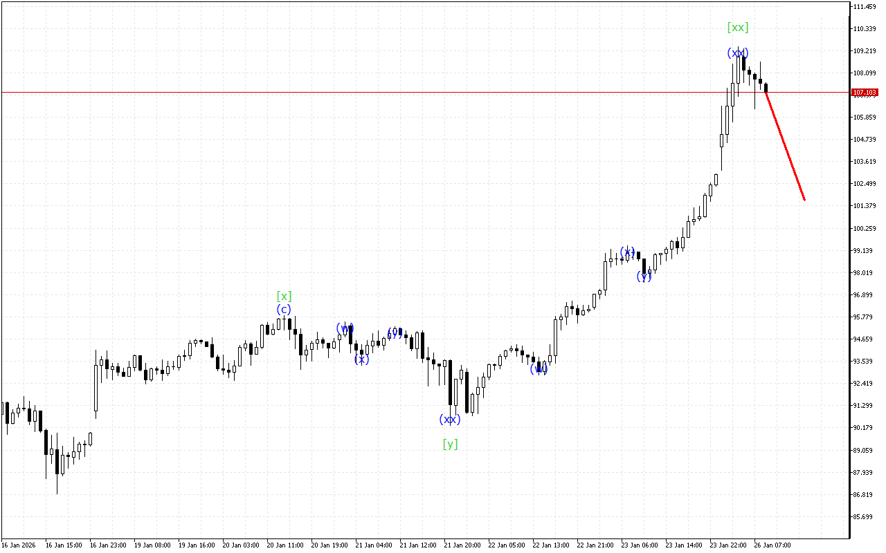 Dinamika pergerakan saat ini menunjukkan terbentuknya triple three. Saat ini, gelombang [xx] telah terbentuk. Setelah terbentuk, diperkirakan akan terjadi perkembangan gelombang ke bawah [z].