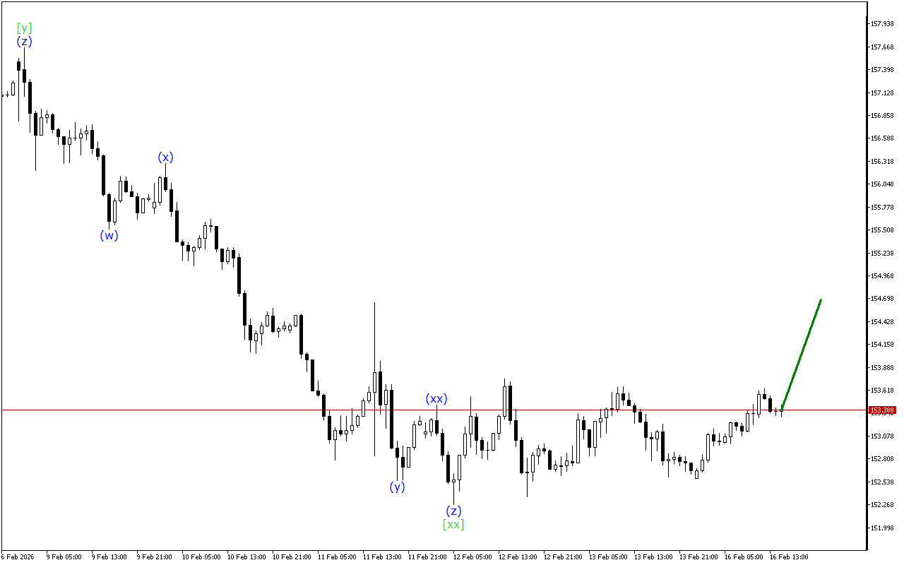 Gelombang dengan kerangka waktu yang lebih rendah membentuk triple three. Harga saat ini berada dalam gelombang (z). Ketika gelombang ini selesai, pergerakan harga yang lebih terarah diperkirakan.