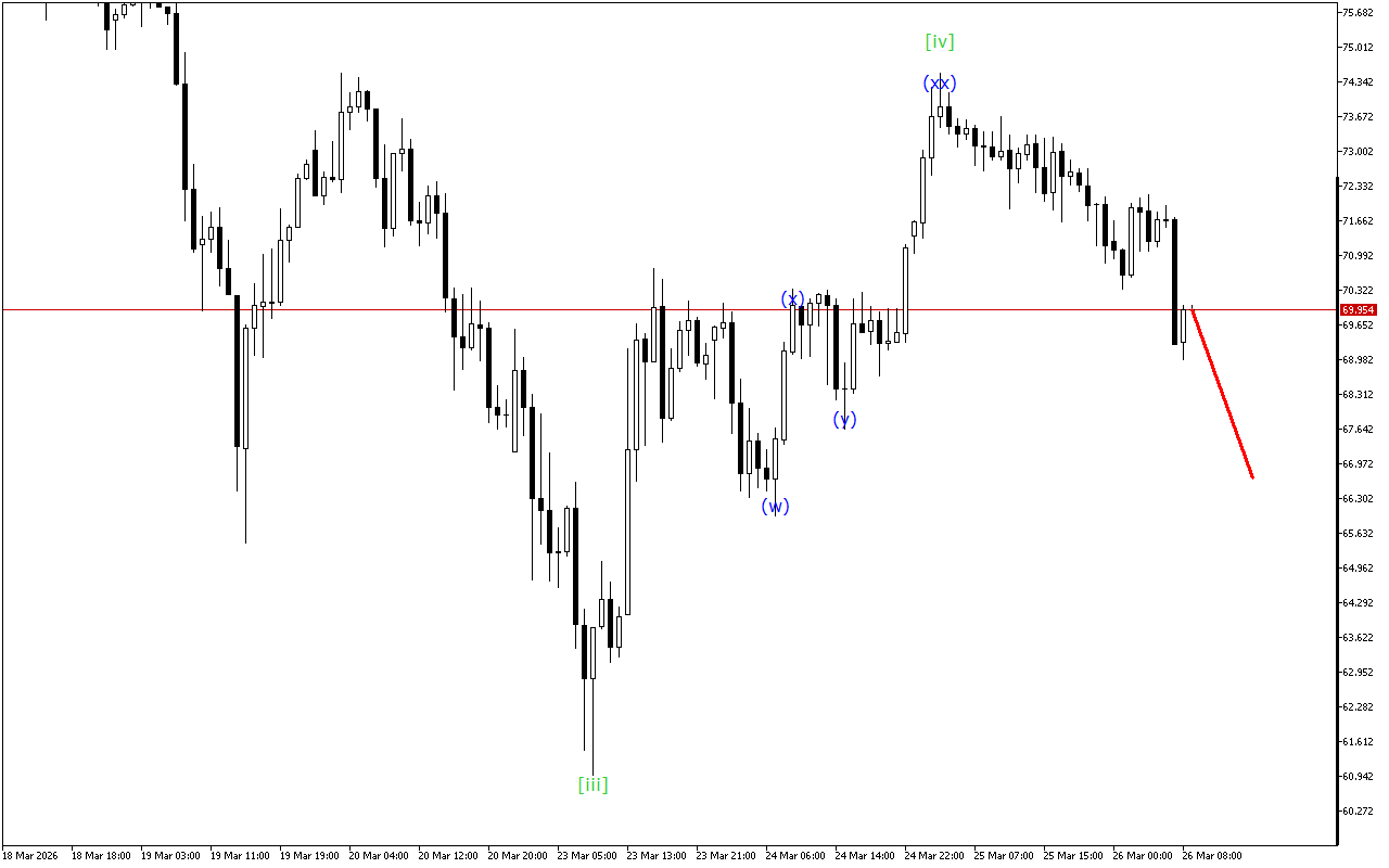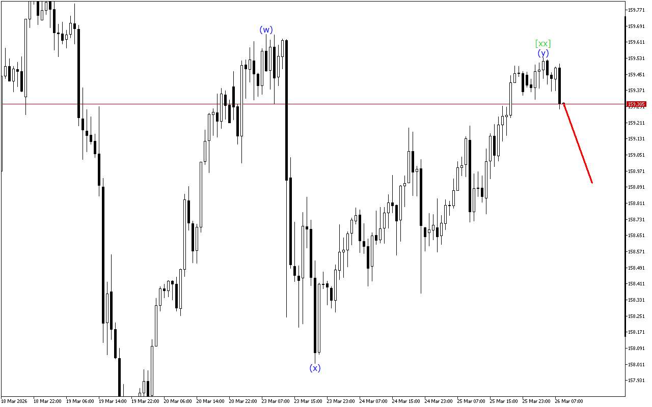 現在の動向は、トリプルスリーの形成を示しています。現時点では、波[xx]が形成されています。その形成後、下向きの波[z]の発展が予想されます。