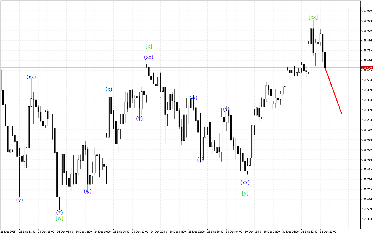 現在の動向は、トリプルスリーの形成を示しています。現時点では、波[xx]が形成されています。その形成後、下向きの波[z]の発展が予想されます。