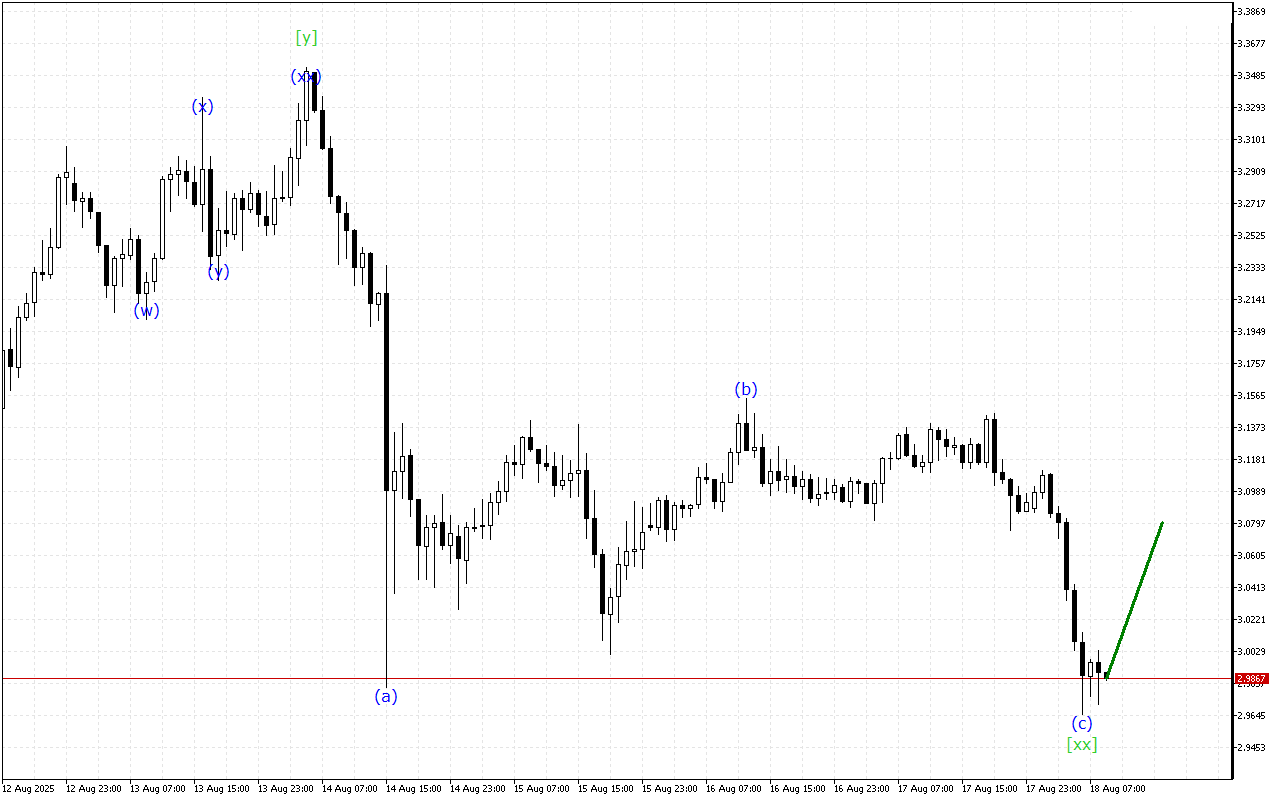 より長い時間枠で、トリプルスリー波構造が形成されています。現在、波[xx]が形成されています。その後、価格は下降を再開するはずです。