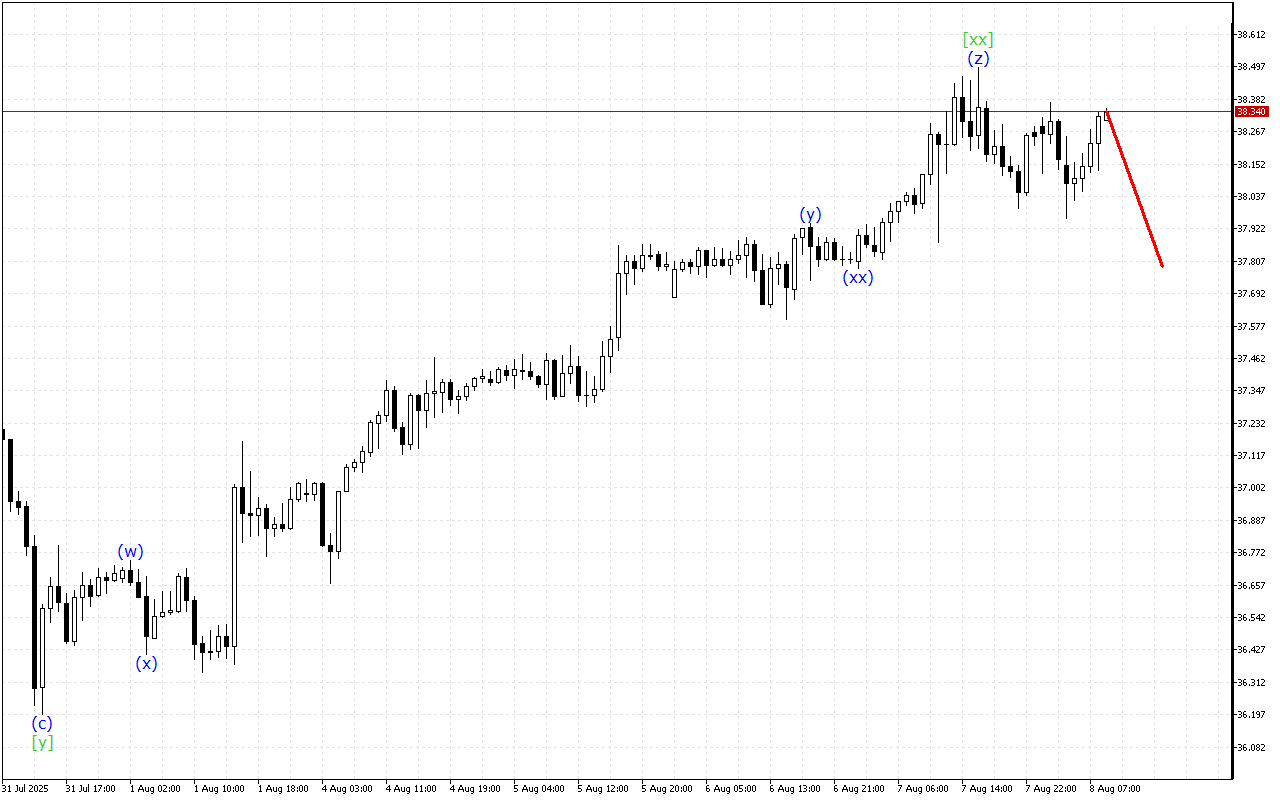 より長い時間枠で、トリプルスリー波構造が形成されています。現在、波[xx]が形成されています。その後、価格は下降を再開するはずです。