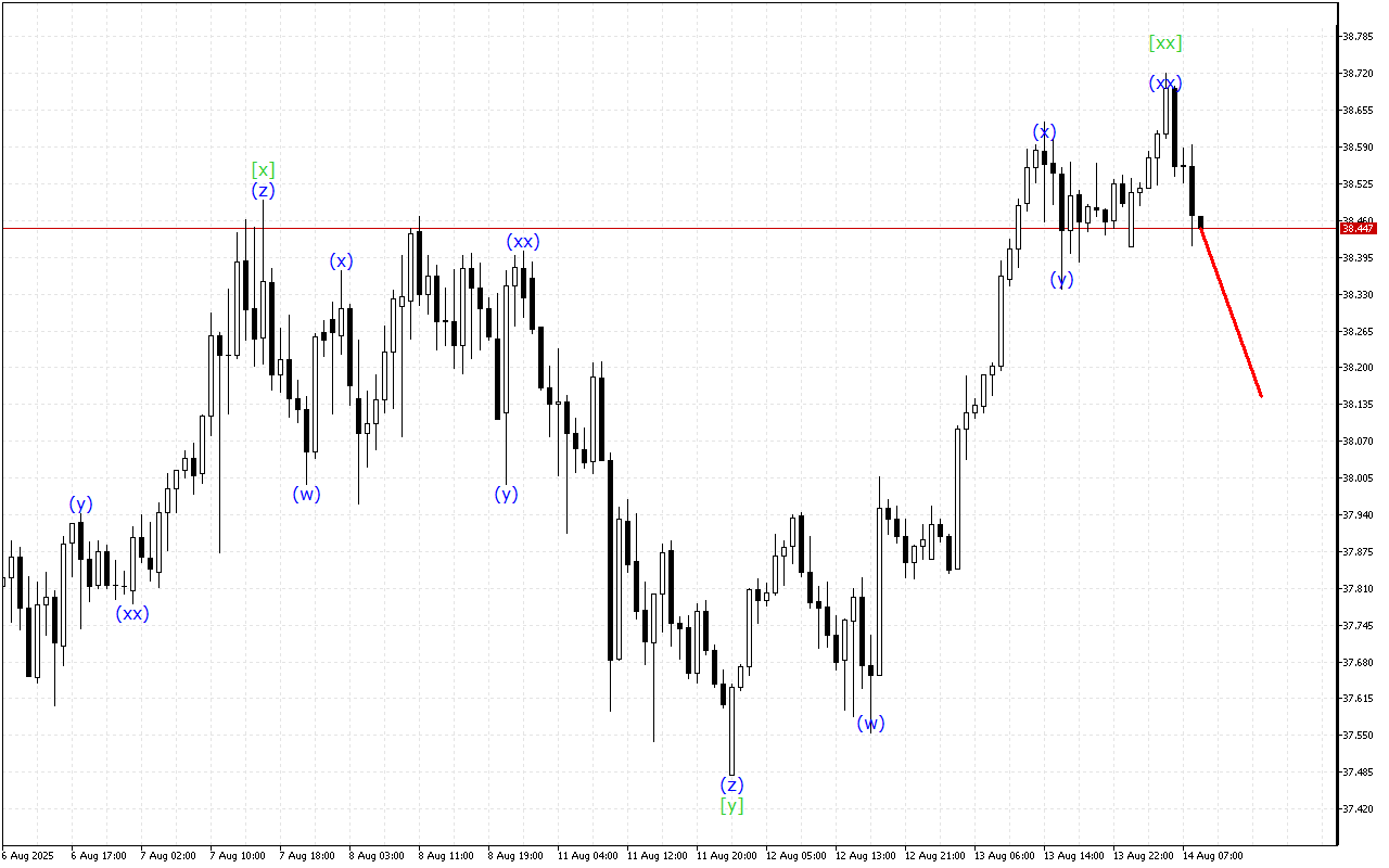 더 낮은 시간대의 파동은 트리플 쓰리를 형성합니다. 가격은 현재 파동(z)에 있습니다. 이 파동이 완료되면 더 방향성 있는 가격 움직임이 예상됩니다.