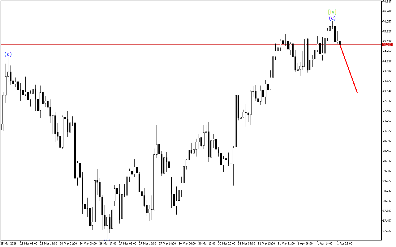 더 높은 차수의 파동 구조는 상승하는 쐐기 모양과 유사합니다. 이 5파동 구조 내에서 파동 [iv]의 형성이 이제 완료되고 있습니다. 형성되자마자 시장은 다시 성장하기 시작할 수 있습니다.