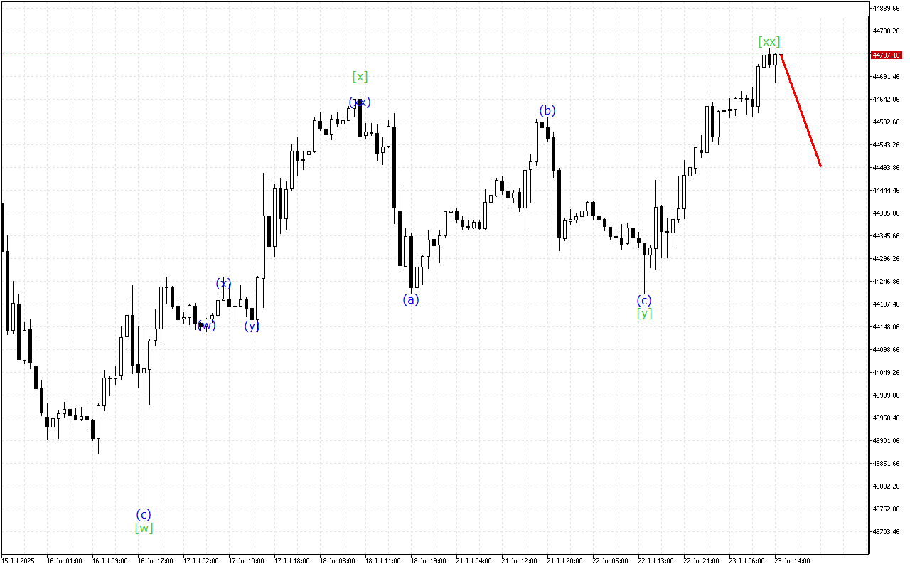 Dalam struktur gelombang darjah rendah, perkembangan triple three dicatatkan. Pembentukan gelombang (z) sedang diselesaikan dalam struktur ini. Dengan latar belakang ini, penyelesaian pembetulan dan permulaan pergerakan yang lebih berarah dijangkakan.