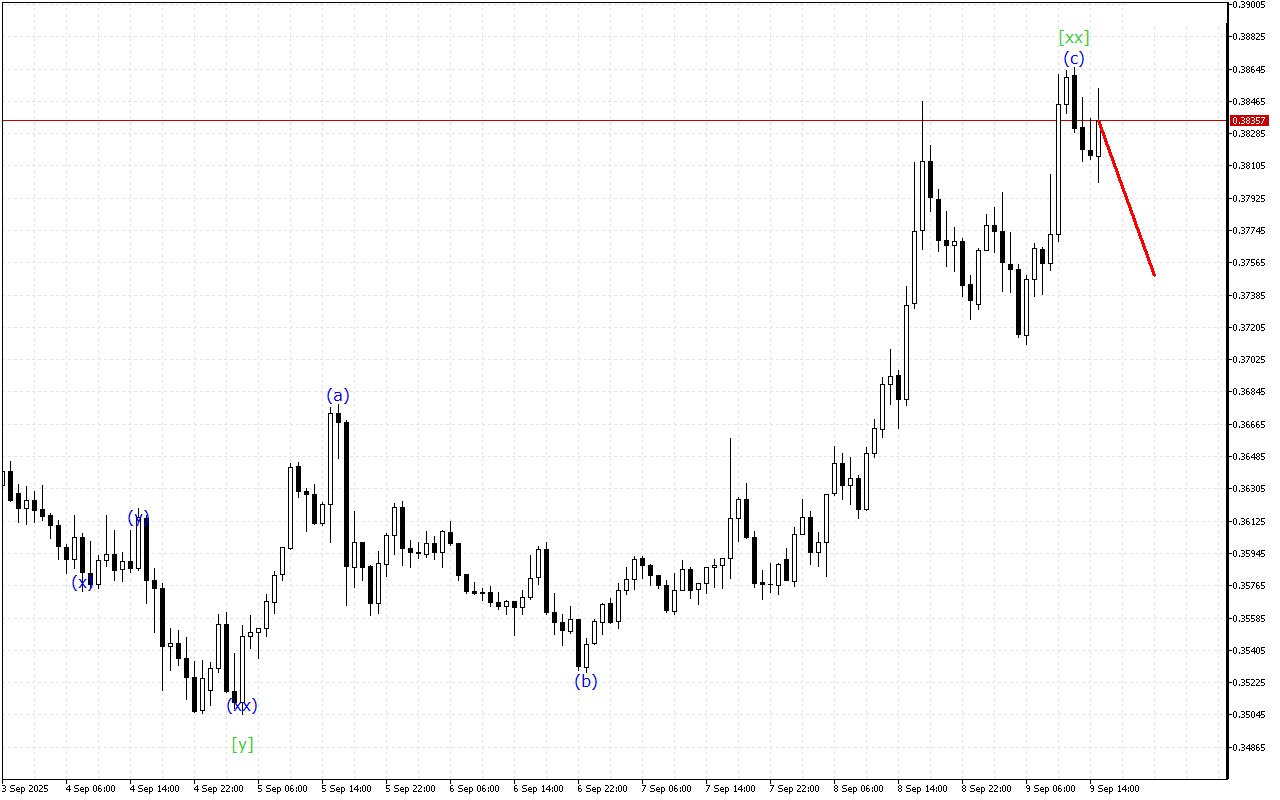 Текущая динамика движения указывает на формирование тройной тройки. На данный момент сформирована волна [xx], после чего ожидается начало развитие нисходящей волны [z].