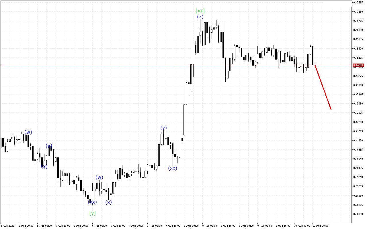 Среднесрочное движение указывает на развитие волновой структуры тройной тройки. В настоящее время сформирована волна [xx], после которой цена должна возобновить движение вниз.