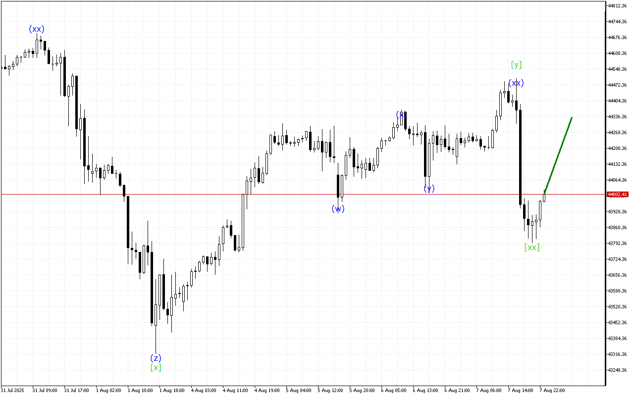 หากพิจารณาจากช่วงเวลาที่สั้นลง ตลาดจะเคลื่อนไหวภายในซิกแซก ABC ในปัจจุบัน ราคาอาจกำลังสร้างคลื่น (c) เสร็จสมบูรณ์ และการเคลื่อนไหวของราคาอาจเคลื่อนตัวเข้าสู่การสร้างคลื่นลูกใหม่