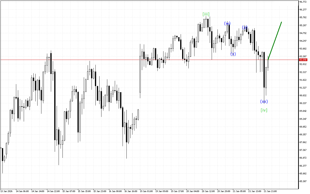 Ayon sa isang lower-degree wave structure, ang USDJPY ay gumagalaw na ngayon sa loob ng ABC zigzag. Sa kasong ito, malamang na kumpletuhin ng presyo ang pagbuo ng wave (c).