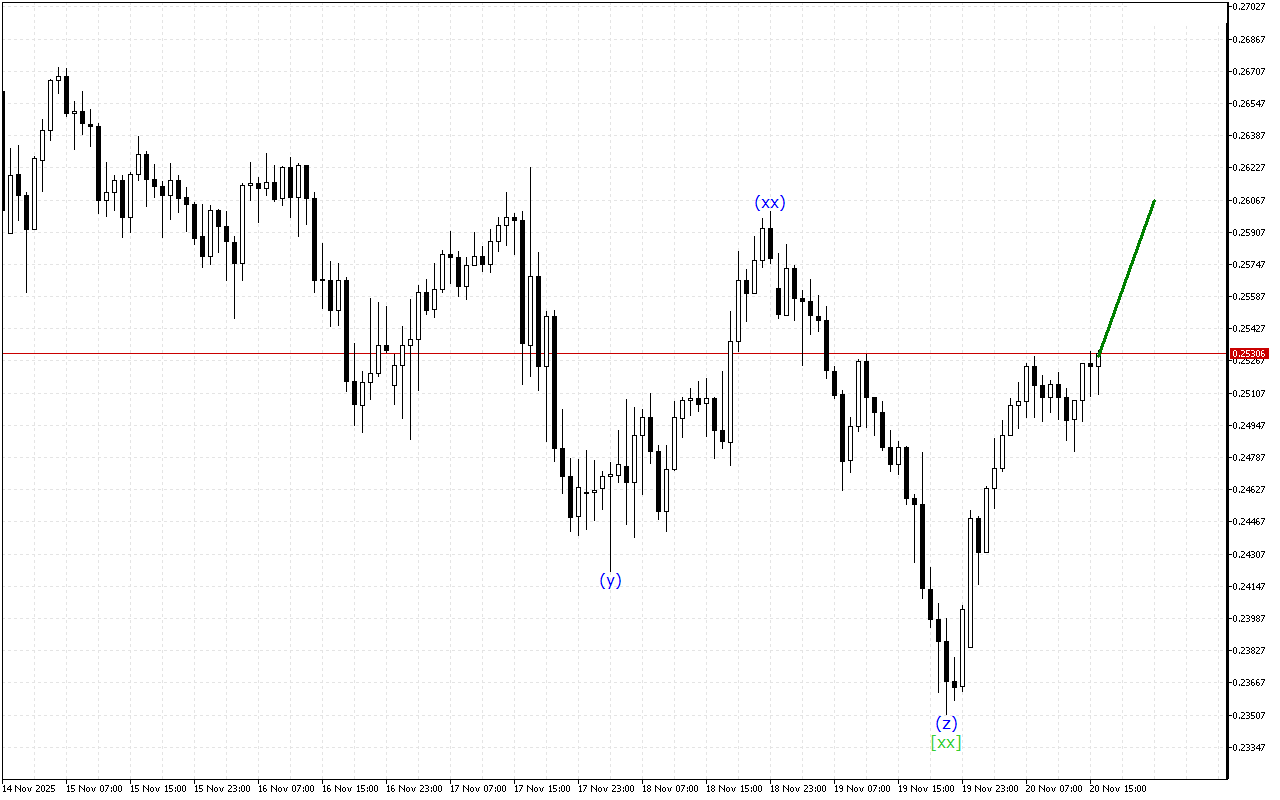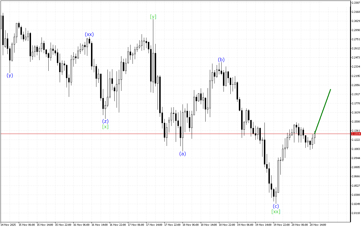 Ang kasalukuyang dinamika ng kilusan ay nagpapahiwatig ng pagbuo ng isang triple three. Sa ngayon, nabuo na ang wave [xx]. Matapos ang pagbuo nito ay inaasahan ang pagbuo ng pababang alon [z].