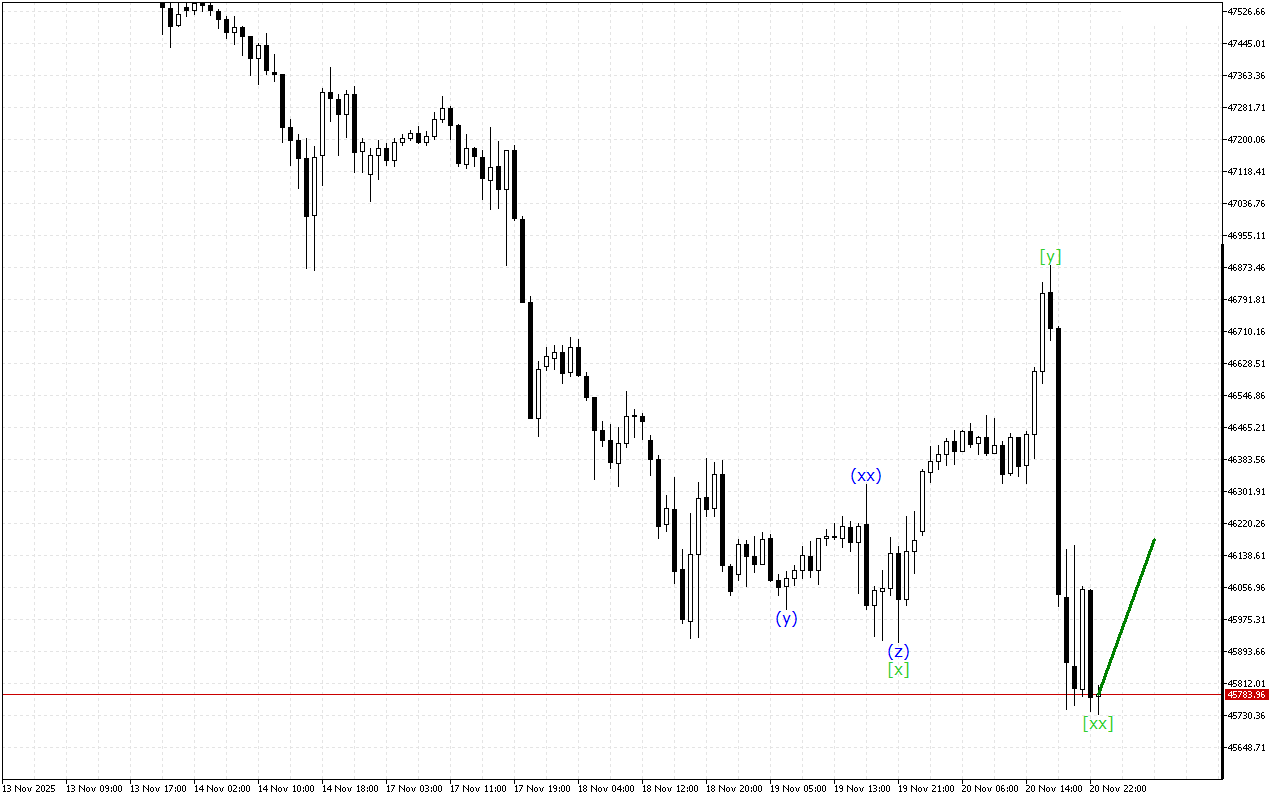 Mayroong pagbuo ng isang triple three wave structure sa isang mas mataas na time-frame. Sa kasalukuyan, nabuo na ang alon [xx]. Pagkatapos nito, dapat ipagpatuloy ng presyo ang pababang paggalaw nito.