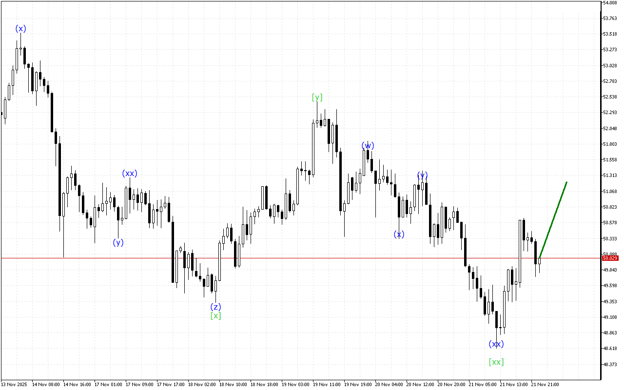 Ang mga alon ng mas mababang time-frame ay bumubuo ng triple three. Ang presyo ay kasalukuyang nasa wave (z). Kapag natapos na ang alon na ito, inaasahan ang isang mas direksyong paggalaw ng presyo.