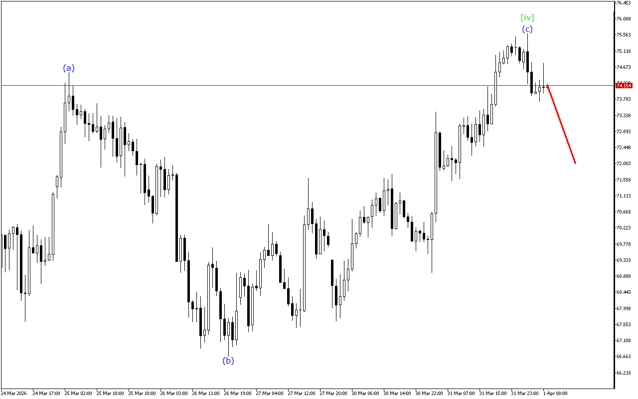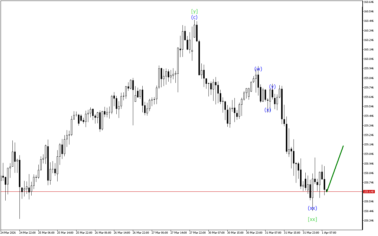 Ang mga alon ng mas mababang time-frame ay bumubuo ng triple three. Ang presyo ay kasalukuyang nasa wave (z). Kapag natapos na ang alon na ito, inaasahan ang isang mas direksyong paggalaw ng presyo.