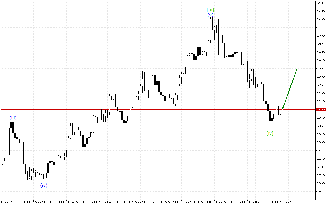 Ang pagsusuri ng mas mataas na antas ng istraktura ng alon ay nagpapakita ng isang bumabagsak na wedge. Sa loob ng five-wave formation na ito, ang pagbuo ng wave [iv] ay nakumpleto at ang pagpapatuloy ng pababang paggalaw sa loob ng wave [v] ay inaasahan.