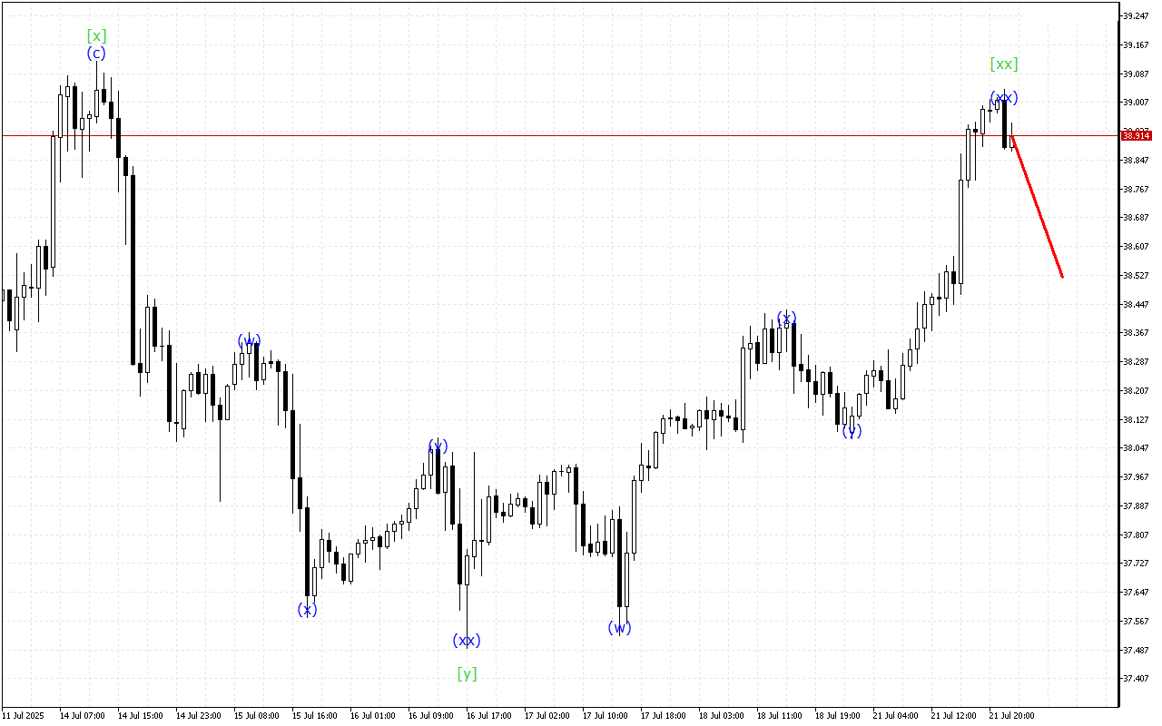 Mayroong pagbuo ng isang triple three wave structure sa isang mas mataas na time-frame. Sa kasalukuyan, nabuo na ang alon [xx]. Pagkatapos nito, dapat ipagpatuloy ng presyo ang pababang paggalaw nito.