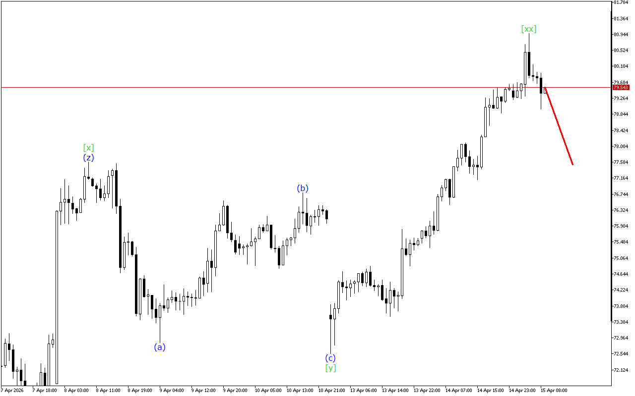 Ở cấp độ sóng thấp hơn, đang quan sát thấy sự phát triển của mô hình Triple Three, trong đó sóng (z) đã hoàn tất.