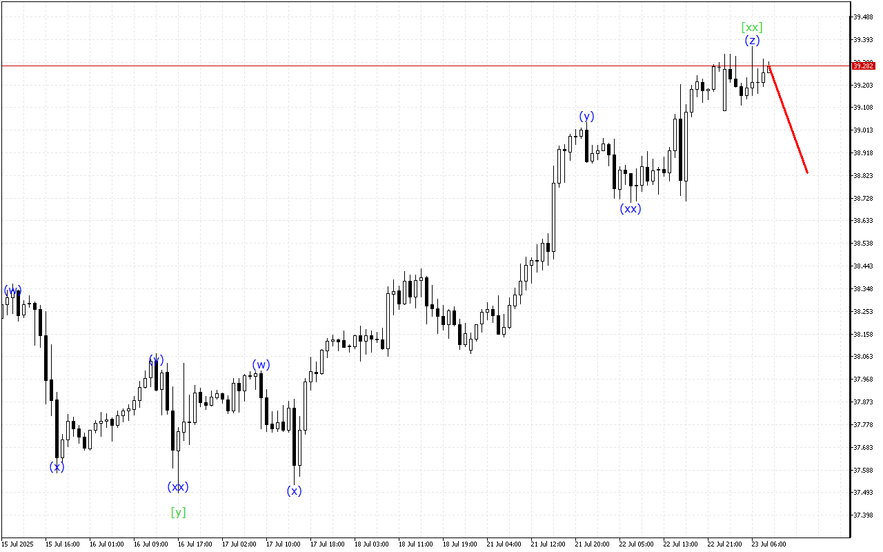 Trong cấu trúc sóng cấp thấp hơn, có thể thấy sự phát triển của mô hình Triple Three. Sóng (z) đang dần hoàn tất trong cấu trúc này. Trong bối cảnh đó, quá trình điều chỉnh có thể sắp kết thúc và một chuyển động có xu hướng rõ ràng hơn được kỳ vọng sẽ bắt đầu.