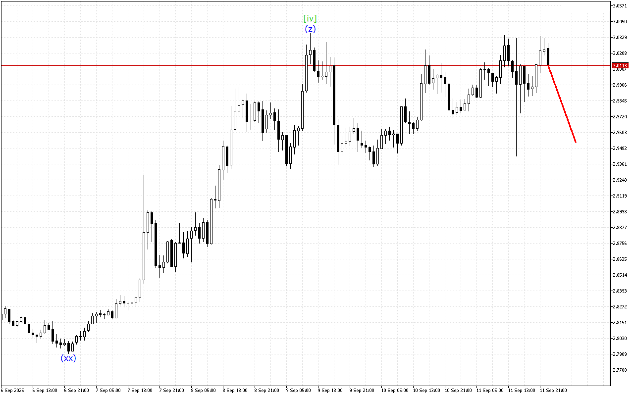 Diễn biến hiện tại cho thấy sự hình thành của mô hình Triple Three (Bộ Ba Điều chỉnh). Ở thời điểm này, sóng [xx] đã được hình thành. Sau khi sóng này hoàn tất, dự kiến sẽ có sự phát triển của sóng giảm [z].